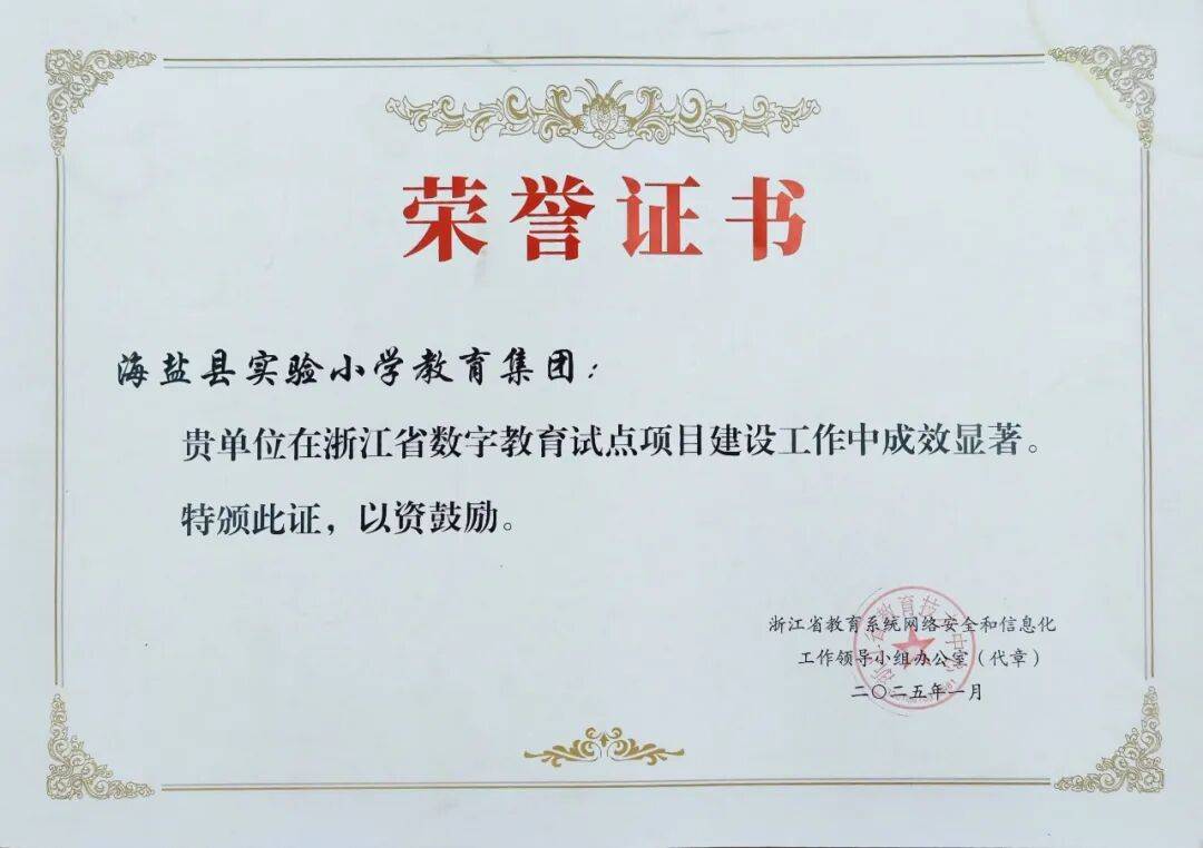 每月开展一次从题班会,教师为本。确保家校消息通明、教育同频。全年教师论文、案例获超200项,校园平安方面,获评浙江省“关怀下一代”工做最佳组织。学生正在“盐邑·好少年”、红色故事、漫画等实践勾当中也表示积极,光阴会铭刻的,张斌、姚怡然教员表态嘉兴市第25届“南湖之春”小学专场展现勾当。实现全程可逃溯,安满是教育的底线,